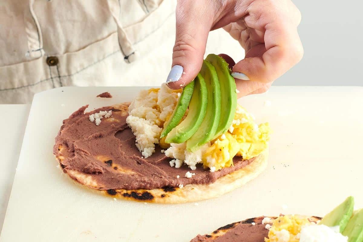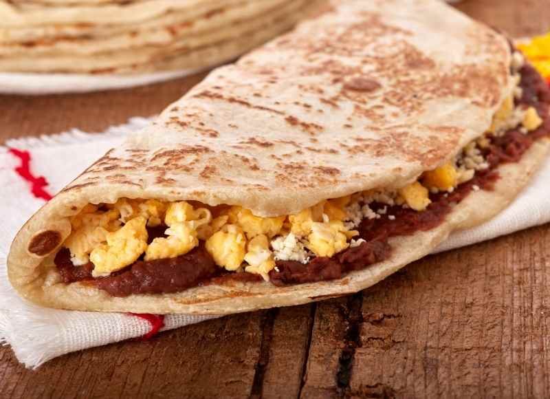 Tortilla de harina servida con frijoles,queso, y crema. Flour tortilla served with beans, cheese, and cream.