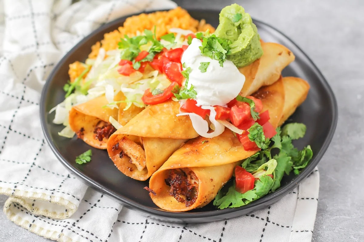 Rellenas de pollo,zanahoria, y cilantro. Acomapañado con repollo, cebolla, chimol, queso y aguacate. Filled with chicken, carrots, and cilantro. served with cabbage, onions, pico de gallo, cheese and avocado.